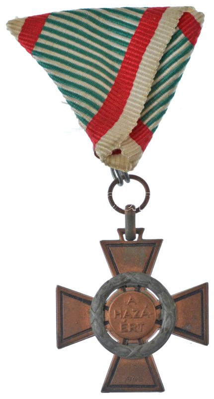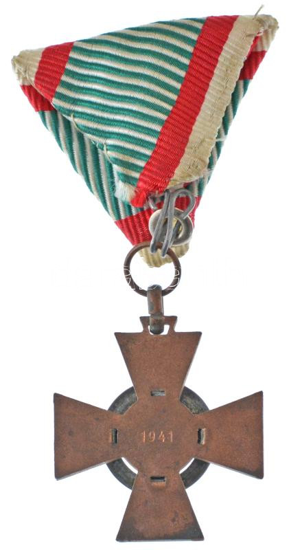 1943. "Tűzkereszt II. fokozata" oxidált hadifém kitüntetés modern mellszalaggal T:VF Hungary 1943. "Fire Cross, 2nd Class" war metal decoration with modern ribbon C:VF NMK 447.