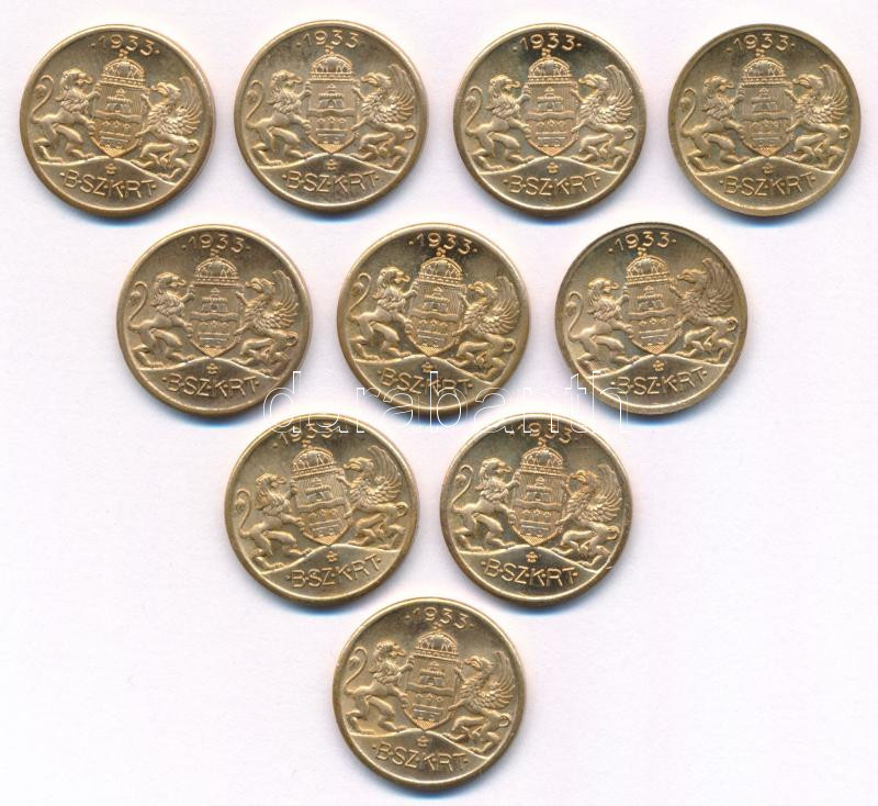 Leírás: 1933. "BSZKRT (Budapest Székesfővárosi Közlekedési Részvénytársaság) Kisszakaszjegy" Cu bárca, Artex-utánveret (10db) T:UNC-XF