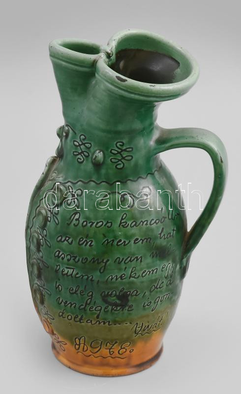 Leírás: 1978 Mónus Ferenc (1931-1999): Miskakancsó, minimális kopással, jelzéssel, humoros vers díszítéssel, m: 25 cm