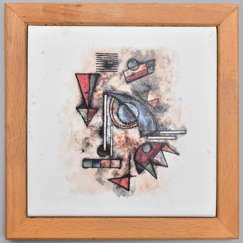 Leírás: Absztrakt mintával kerámia falidísz, fakeretben, szép állapotban, 15x15 cm