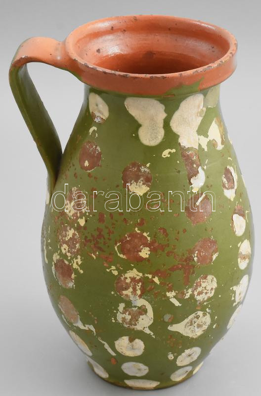Leírás: Antik kerámia pöttyös szilvalekváros köcsög, korának megfelelő kopásokkal, mázas, m: 25 cm