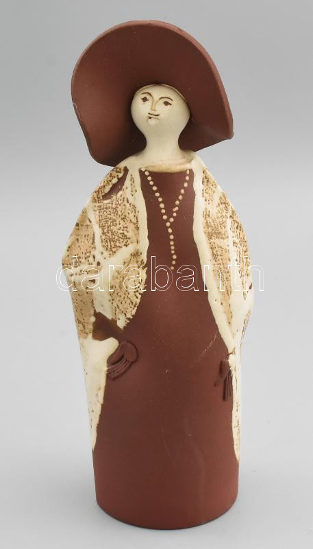 Leírás: Kalapos nő. Jelzett kerámia figura. Minimális kopottsággal, m: 28 cm