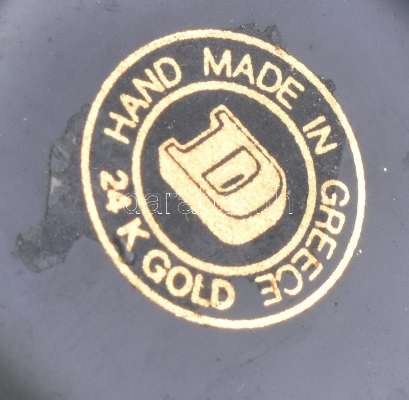 Aranyozott görög porcelán váza. Matricás, jelzett, kopással 16 cm https://www.darabanth.com/hu/444-Gyorsarveres/444.0/Porcelan-keramia-uveg/Porcelan~500008/Aranyozott-gorog-porcelan-vaza-Matricas-jelzett-kopassal-16-cm~II2925491