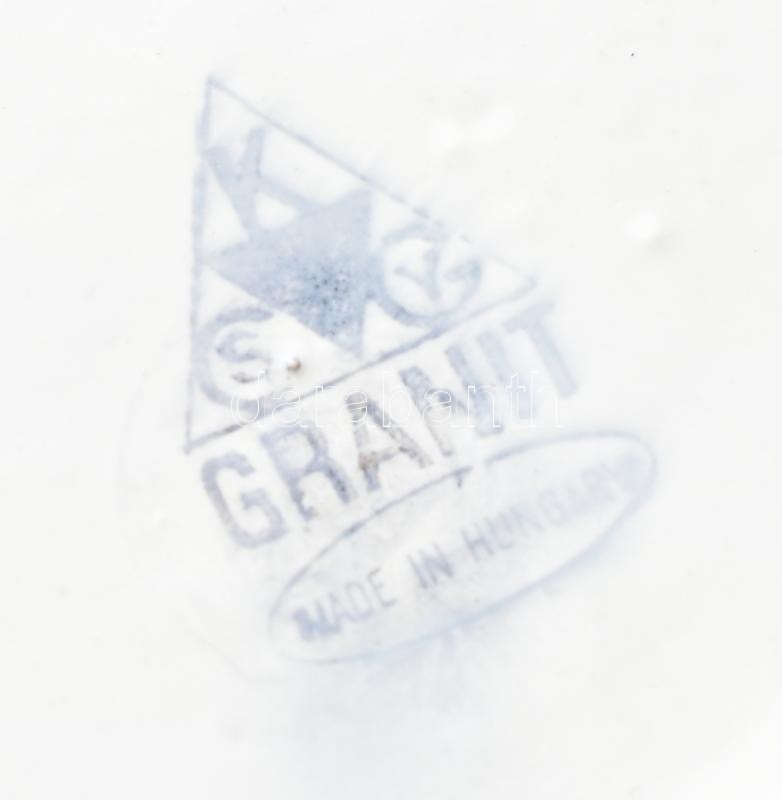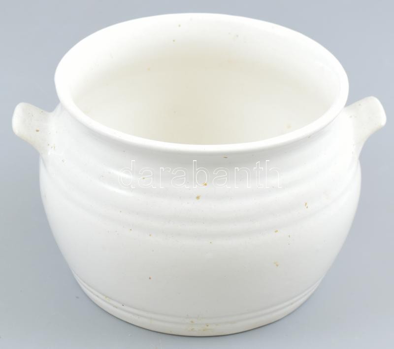 Leírás: Gránit füles kaspó, fehér fajansz, kopásokkal, jelzett, m: 10, d: 12cm