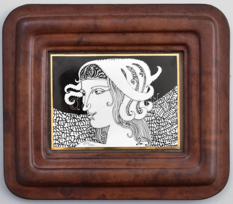 Leírás: Hollóházi Szász Endre által tervezett porcelán kép, sorszámozott (277/500), jelzett, matricás, keretben, hibátlan, 11,5x8,5 cm
