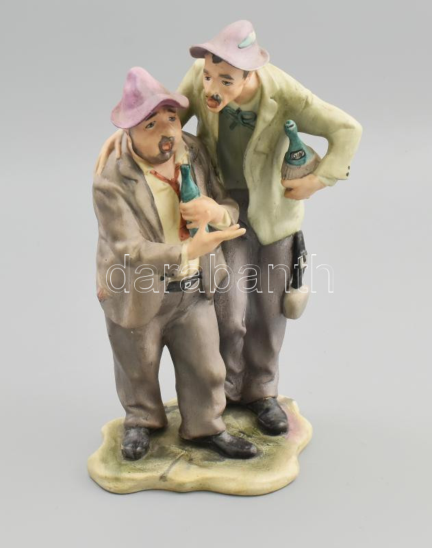 Leírás: Italozó szegénylegények porcelán figura, szignóval és jelzéssel, hibátlan, m: 24,5 cm
