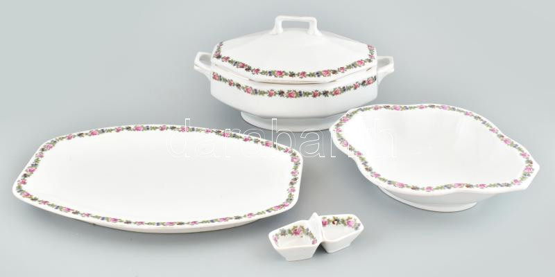 Leírás: MCP csehszlovák porcelán, fűszertartó, leveses tál, főzelékes és sültes tál. Kopásokkal, jelzett.
