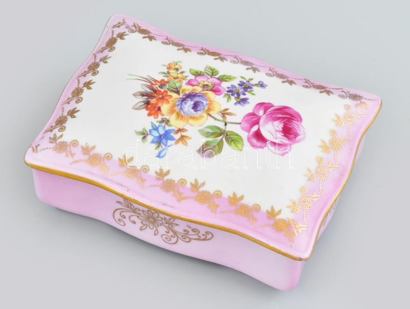 Leírás: Rózsaszín német porcelán dobozka. Matricás, jelzett, hibátlan, 12x10 cm