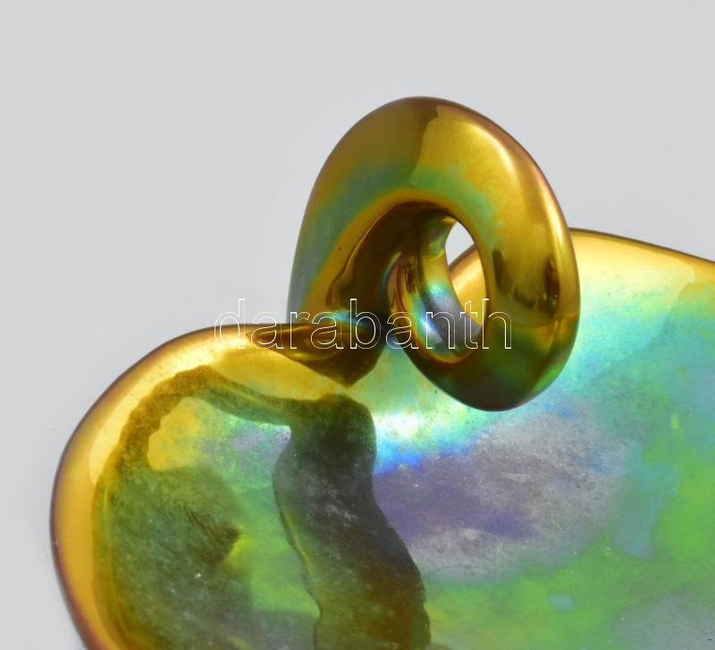 Leírás: Zsolnay eozin mázas szív alakú tál. Jelzett, hibátlan. 12x12 cm