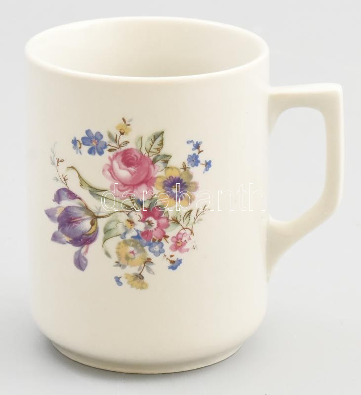 Leírás: Zsolnay virágmintás porcelán bögre, matricás, jelzett, hibátlan, m: 9,5 cm