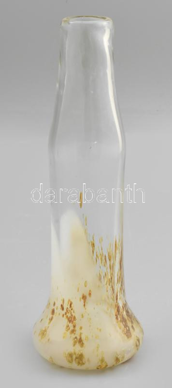 Leírás: Aljánál színezett hutaüveg váza, jelzés nélkül, hibátlan, m: 26 cm