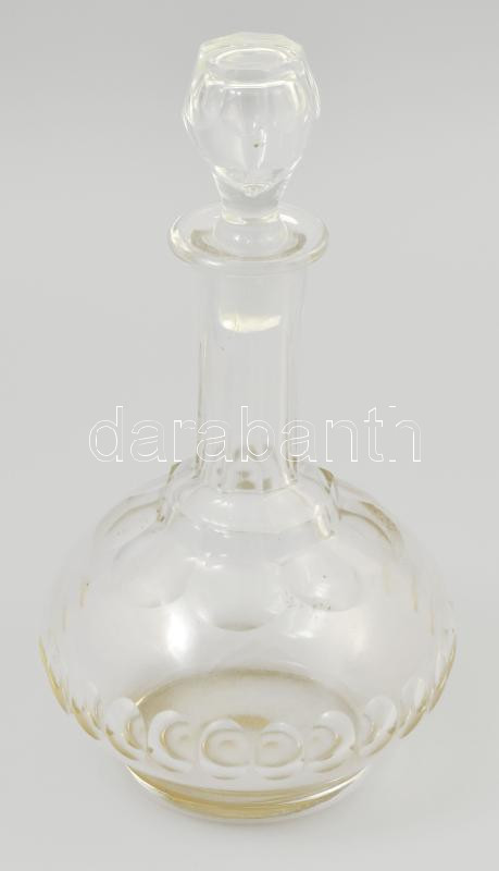 Leírás: Antik hutaüveg italos palack dugóval, jelzés nélkül, kis kopással, m: 23,5 cm