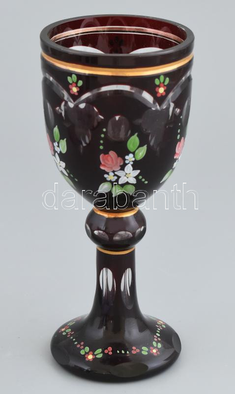 Leírás: Biedermeier talpas üveg pohár, korának megfelelő kopásokkal, m: 18 cm