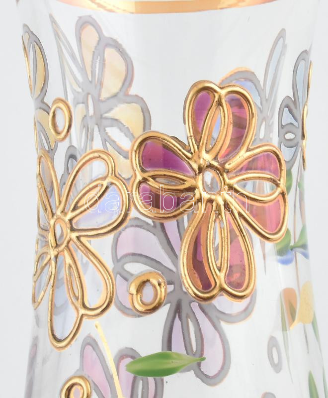 Leírás: Cseh üveg váza, színezett, kézzel festett, jelzés nélkül, minimális kopással, m: 24,5 cm
