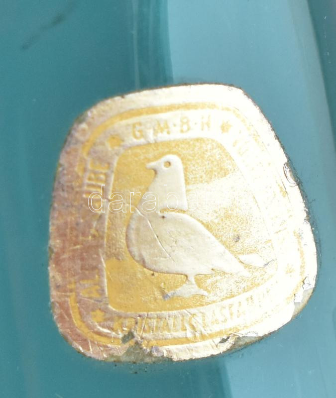 Német türkíz design üveg váza. Jelzett, hibátlan 18 cm https://www.darabanth.com/hu/444-Gyorsarveres/444.0/Porcelan-keramia-uveg/Uvegtargyak~500009/Nemet-turkiz-design-uveg-vaza-Jelzett-hibatlan-18-cm~II2856155