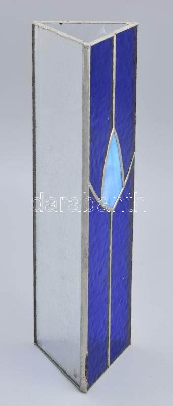 Leírás: Régi ólomüveg váza, színezett üveg oldalrésszel, jelzés nélkül, szép állapotban, m: 30 cm