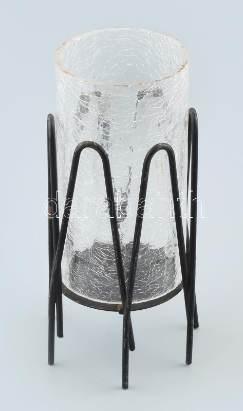 Leírás: Retro fém gyertyatartó krakléüveg betéttel, kopásokkal, jelzés nélkül, m :15,5 cm