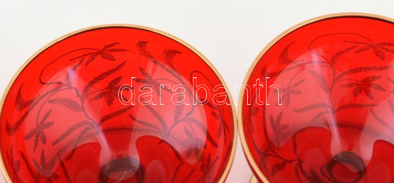 Tűzpiros aranyozott, virágmotívumos likőröspohár, 6 dn, hibátlan, m: 6... https://www.darabanth.com/hu/444-Gyorsarveres/444.0/Porcelan-keramia-uveg/Uvegtargyak~500009/Tuzpiros-aranyozott-viragmotivumos-likorospohar-6-dn-hibatlan-m-6-5-cm~II2824593