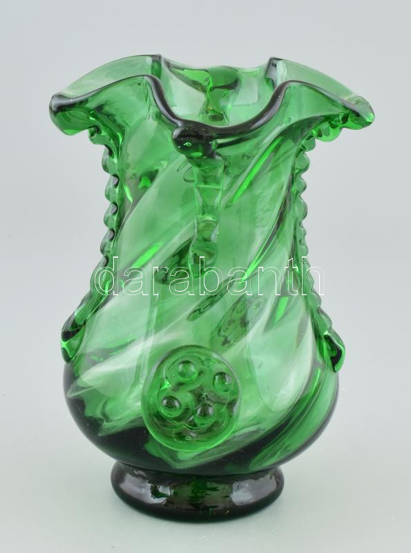 Leírás: Zöld szakított üveg váza. Anyagában színezett, hibátlan 20 cm