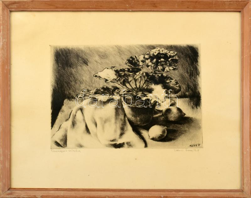 Kiss Terézia (1928-2016): Cserepes virág. Rézkarc, papír, jelzett, üve... https://www.darabanth.com/hu/445-Gyorsarveres/445.0/Festmenyek-es-grafikak/Festmenyek-es-grafikak~500001/Kiss-Terezia-1928-2016-Cserepes-virag-Rezkarc-papir-jelzett-uvegezett-fakeretben-24C39729~II2942018