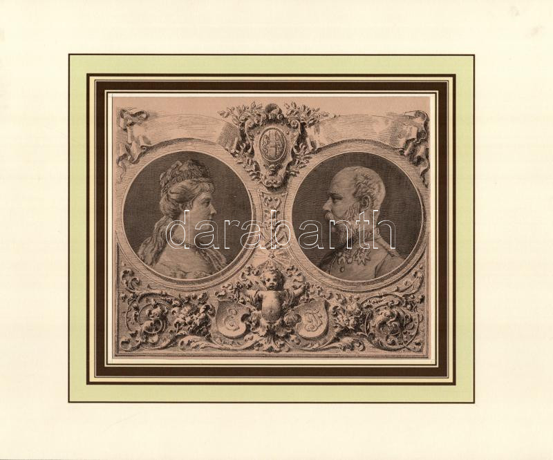 Erzsébet (Sisi) és Ferenc József portréja, rotációs fametszet, papír, jelzés nélkül, megjelent az Illustrirte Zeitung egyik 1881-ben megjelent számában, modern paszpartuban, 16x19,5 cm