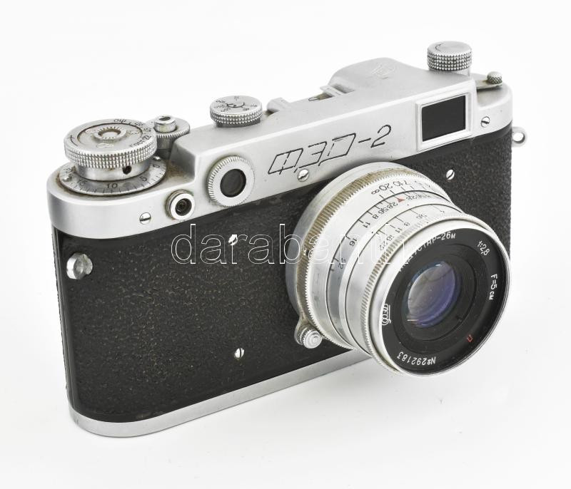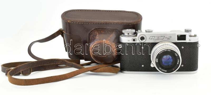 cca 1960 FED-2 szovjet fényképezőgép, Industar-26M 1:2,8/50 mm objektívvel, eredeti tokjában, működő állapotban / Vintage USSR camera in original case, in working condition