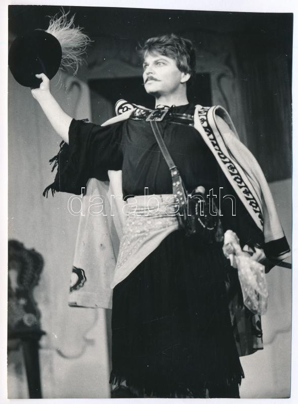 Leírás: 1966 Szabó Gyula színész egyik szerepében, sajtófotó, a hátoldalon feliratozott, pecséttel jelzett, körbevágott, 13x9,5 cm