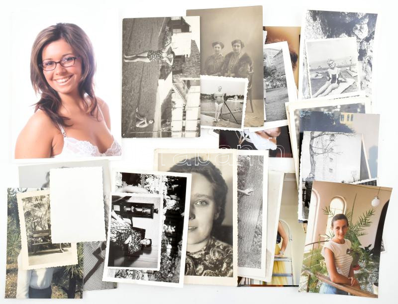 Leírás: Hölgyeket ábrázoló vegyes régi és modern fotók, 40 db