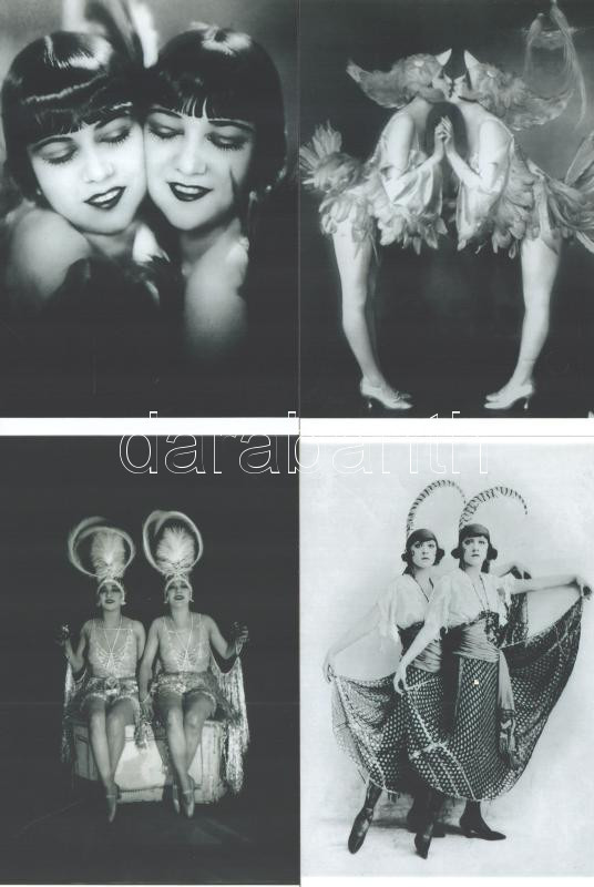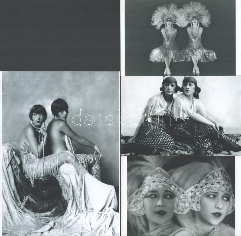 cca 1920-as évek, a Dolly Systers, azaz Deli Janka és Deli Rózsi balassagyarmati iker lányok - később amerikás magyarok - revütáncosként hódították meg a fél világot, 1945-ben filmet is forgattak a sok sikerrel, kalanddal és küzdelemmel teli életükről, 8 db modern nagyítás Pánczél György (1920-?) filmtörténész és műgyűjtő hagyatékából, 21x15 cm és 15x10 cm