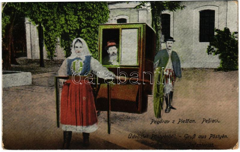 Leírás: 1925 Pöstyén, Piestany; Pesiaci / Fürdőkocsi, infanterista. Kohn Bernát kiadása / spa carriage (EK)