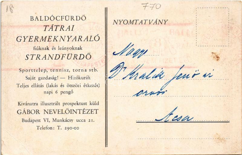 Leírás: Baldóc, Baldócz-fürdő, Kúpele Baldovce; Tátrai gyermeknyaraló fiúknak és lányoknak, strandfürdő, sporttelep / spa, holiday resort (EB)