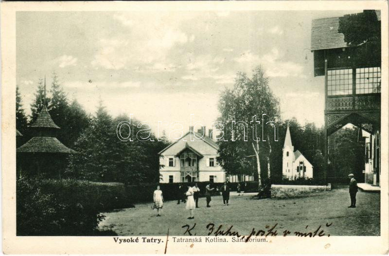Leírás: Barlangliget, Höhlenhain, Tatranská Kotlina (Tátra, Magas Tátra, Vysoké Tatry); Szanatórium / sanatorium, spa (fl)