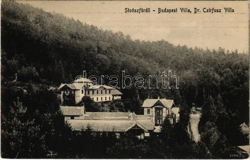 Stószfürdő, Stoósz-fürdő, Kúpele Stós; Budapest és Dr. Czirfusz villa.... https://www.darabanth.com/hu/445-Gyorsarveres/445.0/Kepeslapok/Felvidek~2000007/Stoszfurdo-Stoosz-furdo-Kupele-Stos-Budapest-es-Dr-Czirfusz-villa-Wlaszlovits-Gusztav~II2935468