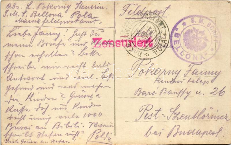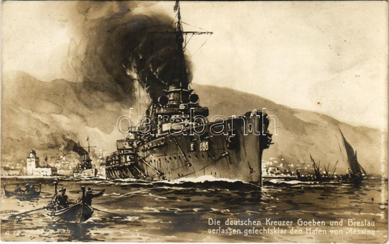 1915 Die deutschen Kreuzer Goeben und Breslau verlassen gefechtsklar den Hafen von Messina / WWI German Navy Cruisers Goeben and Breslau leave the port of Messina + "K.U.K. MARINEFELDPOSTAMT POLA" "SM SCHIFF BELLONA"