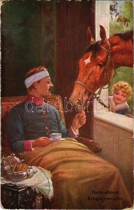 Leírás: Kriegskameraden / Hadipajtások / WWI Austro-Hungarian K.u.K. military art postcard, injured soldier with his horse. B.K.W.I. 930-10. (kopott sarkak / worn corners)