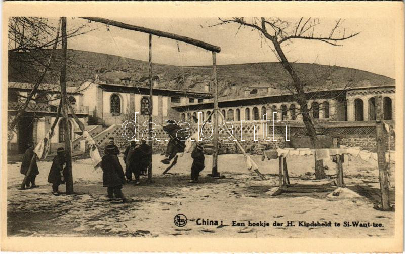 Leírás: China. Een hoekje der H. Kindsheid te Si-Want-tze. Missien van Scheut / Catholic mission in China, Chinese children with swing (EK)