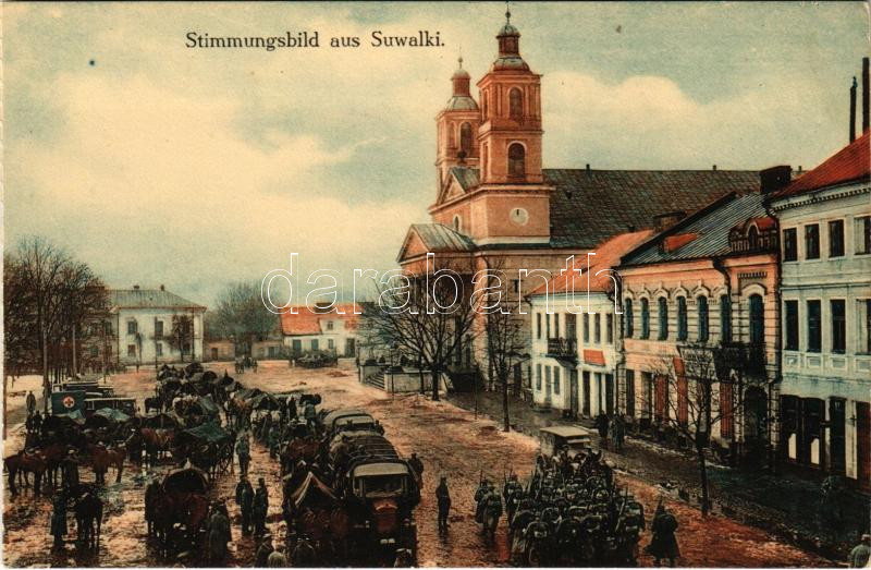 Suwalki, Stimmungsbild / street view, WWI German military, soldiers https://www.darabanth.com/hu/445-Gyorsarveres/445.0/Kepeslapok/Lengyelorszag~2000081/Suwalki-Stimmungsbild-street-view-WWI-German-military-soldiers~II2936104