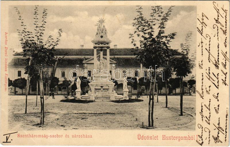 1901 Esztergom, Szentháromság szobor és a városháza. Kardos Dezső kiad... https://www.darabanth.com/hu/445-Gyorsarveres/445.0/Kepeslapok/Magyarorszag~2000005/1901-Esztergom-Szentharomsag-szobor-es-a-varoshaza-Kardos-Dezso-kiadasa~II2940212