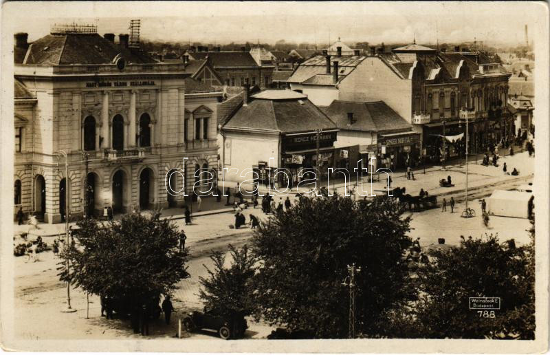 Leírás: 1931 Nagykőrös, Fő tér, Városi szálloda, piac, Hercz Hermann, Singer Mór és fia és Révész Lajos üzlete. Németh Sándor kiadása