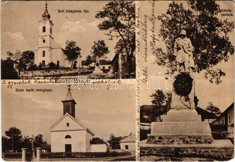 1944 Balatonfőkajár, Református templom tér, római katolikus templom, ... https://www.darabanth.com/hu/445-Gyorsarveres/445.0/Kepeslapok/Magyarorszag~2000005/1944-Balatonfokajar-Reformatus-templom-ter-romai-katolikus-templom-Hosok-szobra-EK~II2936930