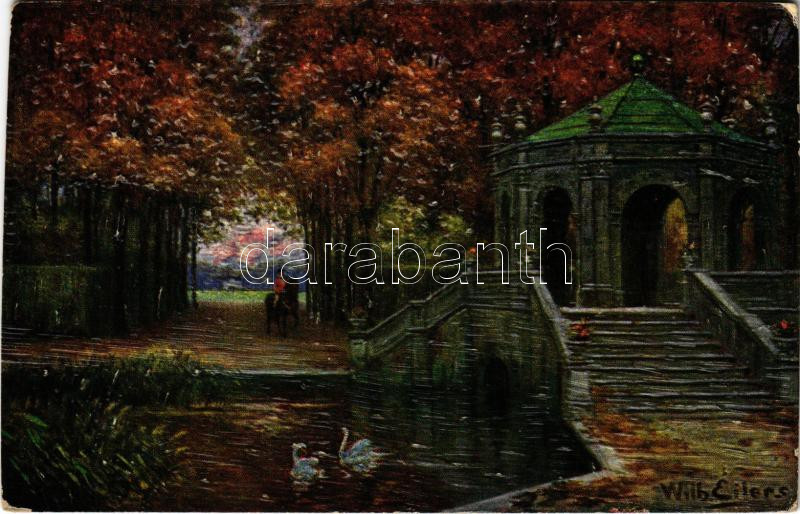 Leírás: 1917 Parklandschaft. Erpaco-Kunstverlag Facsimile Ölgemälde s: Wilh. Eilers (vágott / cut)