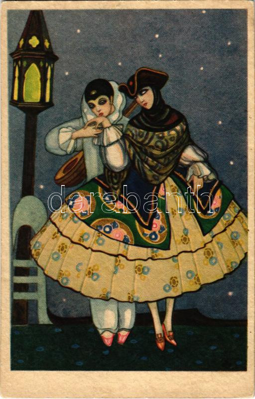 Italian lady art postcard, masquerade ball. Degami 1035. https://www.darabanth.com/hu/445-Gyorsarveres/445.0/Kepeslapok/Muveszlapok~2000036/Italian-lady-art-postcard-masquerade-ball-Degami-1035~II2940727
