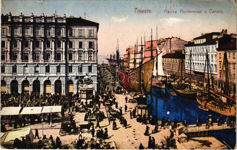 Leírás: Trieste, Trieszt; Piazza Ponterosso e Canale / canal, market