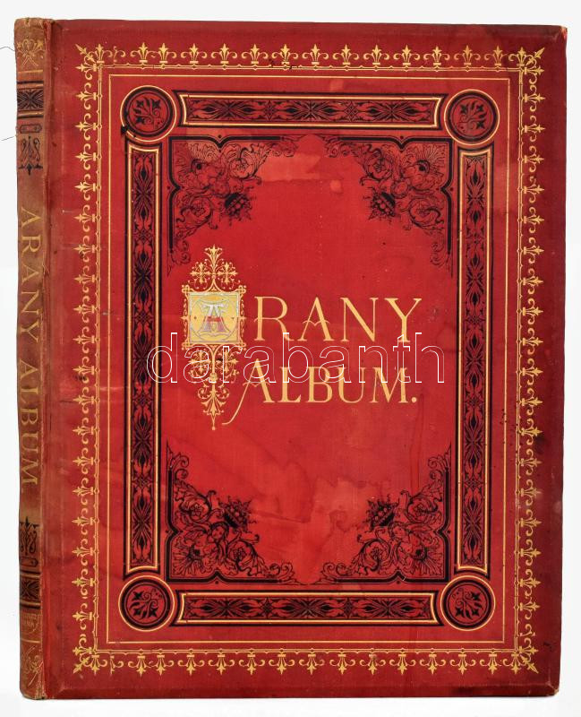 Arany Album. Than Mór és Lotz Károly fényképezett rajzai Arany János költeményeihez. Bp., é.n., Ráth Mór, 19 sztl. lev. + 8 t. (hártyapapírral védett, fekete-fehér képtáblák). Kiadói aranyozott, festett, dombornyomott egészvászon-kötés, kissé foltos borítóval, sérült gerinccel, foltos lapokkal, a címlapon tulajdonosi névbejegyzéssel.