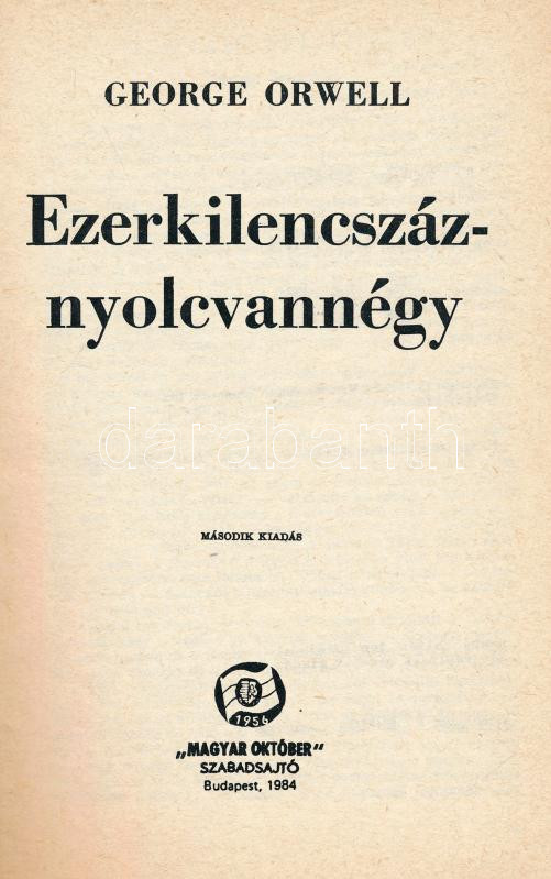 Orwell, George: Ezerkilencszáznyolcvannégy. Ford.: Antal György. Bp., ... https://www.darabanth.com/hu/445-Gyorsarveres/445.0/Konyvek/Konyvek-Egyeb-ritkasagok~1500028/Orwell-George-Ezerkilencszaznyolcvannegy-Ford-Antal-Gyorgy-Bp-1984-Magyar-Oktober-Sz~II2937029