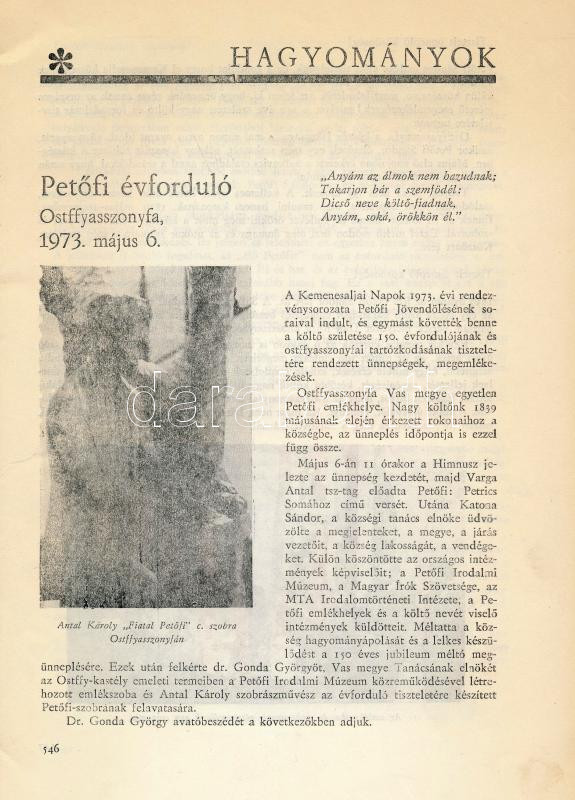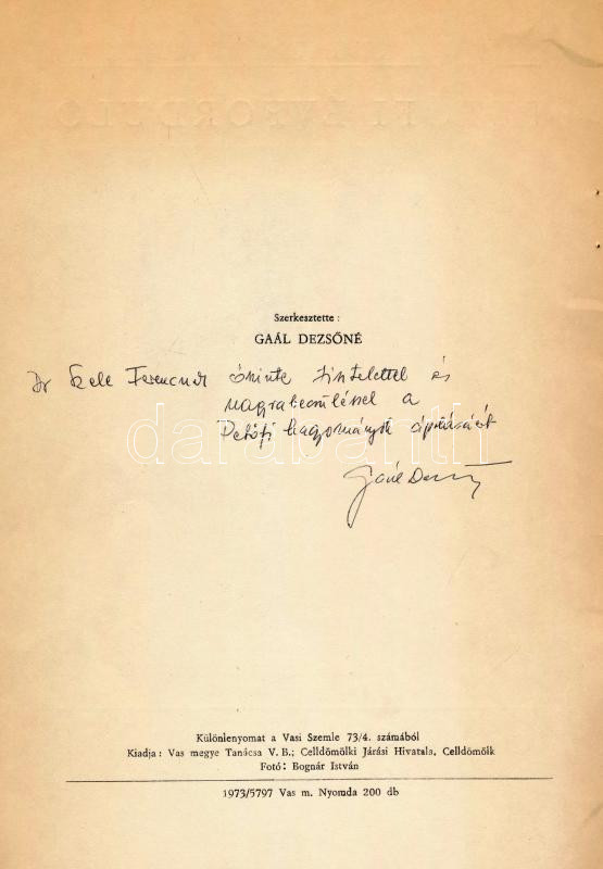 Petőfi évforduló. Ostffyasszonyfa, 1973. május 6. Szerk.: Gaál Dezsőné. (Különlenyomat a Vasi Szemle 73/4. számából). DEDIKÁLT! Celldömölk, 1973, Vas megye tanácsa V.B. Celldömölki Járási Hivatala, 546-577 p. Kiadói tűzött papírkötés. Megjelent 200 példányban.