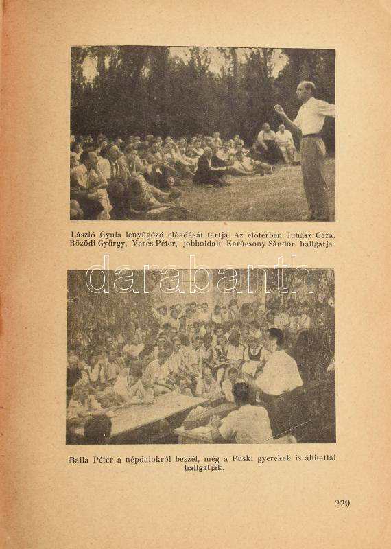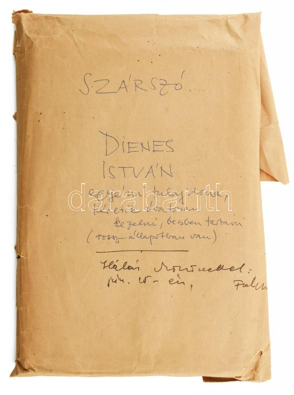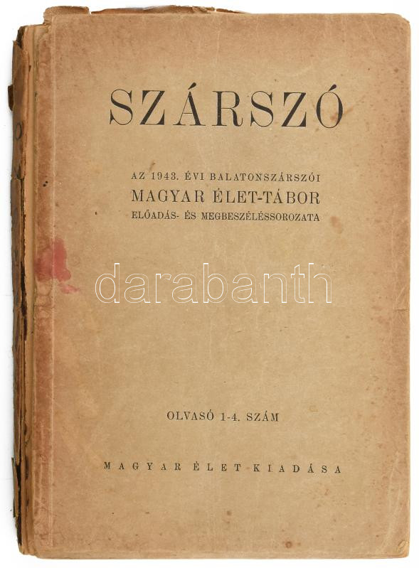 Szárszó. Az 1943. évi balatonszárszói Magyar Élet-Tábor előadás- és megbeszéléssorozata. Bp., 1943, Magyar Élet, 222 p. Kiadói papírkötés, szakadozott papírborítékban, széteső állapotban, foltos borítóval, ceruzás bejelölésekkel és bejegyzésekkel. A papírborítékbon: "Dienes István egyéni tulajdona, kéretik óvatosan kezelni, becsben tartani. (Rossz állapotban van.)" A könyv címlapján Dienes István (1929-1995) régész, muzeológus névbejegyzésével. A borítékon ajándékozási sorokkal, azonosítatlan személytől (Faludy Györgytől (???))