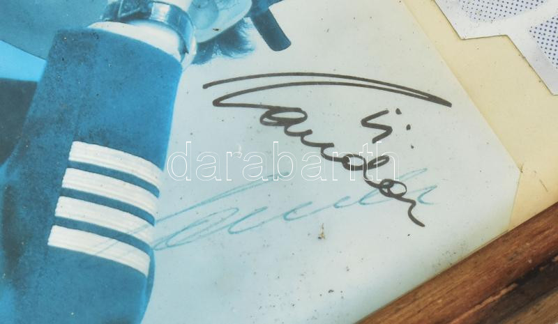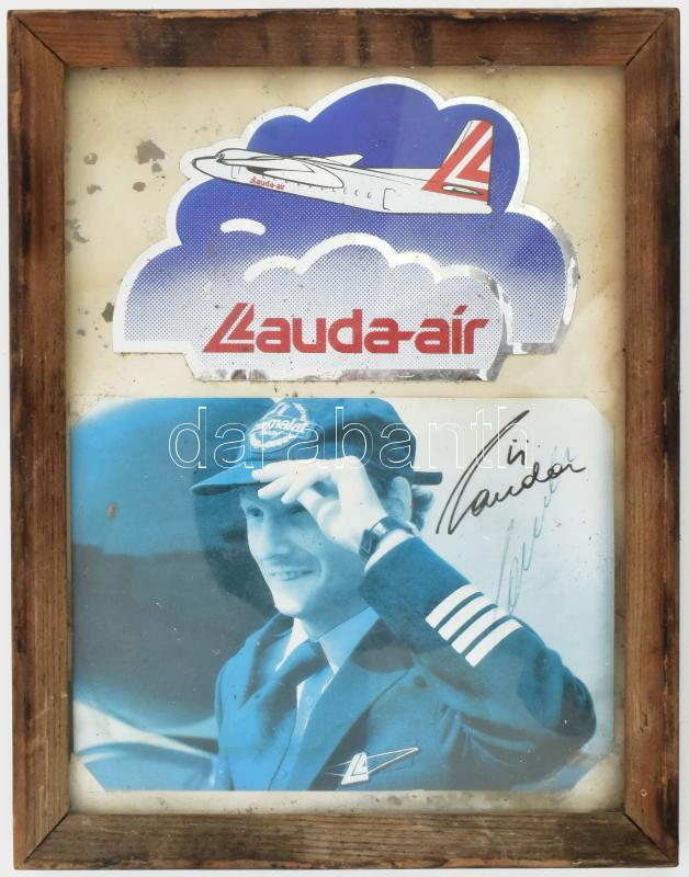 Leírás: Niki Lauda autóversenyző és légitársaság tulajdonos autográf aláírása őt magát ábrázoló képen. Üvegezett keretben 15x21 cm