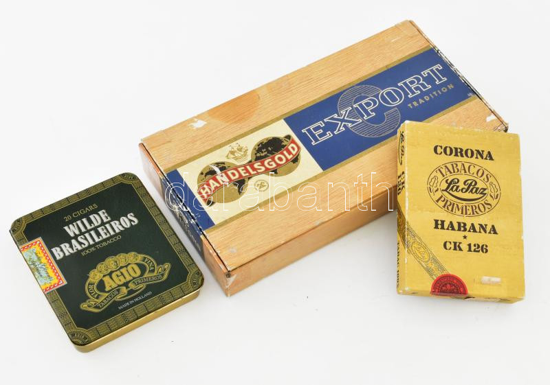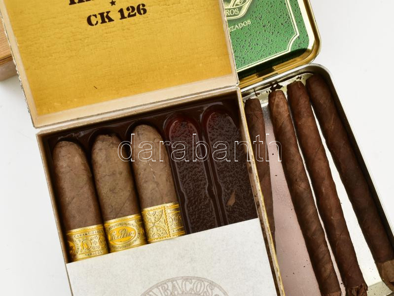 Leírás: 3 megkezdett doboz szivar, benne kubai is fa és fém dobozokkal