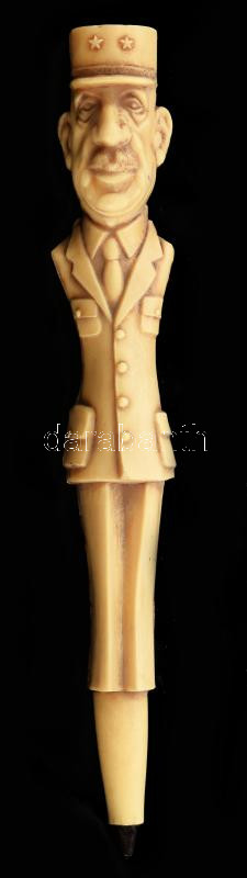 Leírás: "Charles De Gaulle" karikatúra formájú toll, jelzett (Spade Depose), m: 15 cm